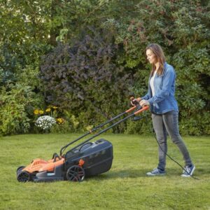 H ηλεκτρική Black&Decker BEMW471BH χλοοκοπτική μηχανή διαθέτει κουμπί ενεργοποίησης που σας επιτρέπει την εύκολη εκκίνηση και υψηλής απόδοσης μαχαίρι για καλύτερη αποκομιδή και κοπή.